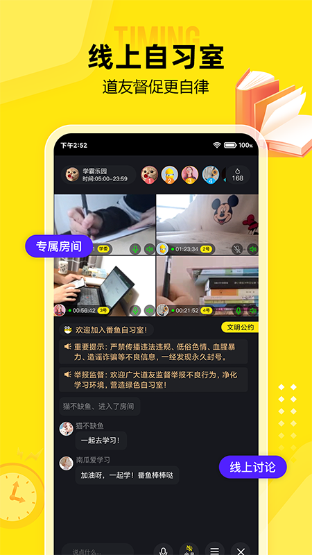 2、从小学、初中、高中到大学、研究生、在职......,每个喜欢在线自学的人都能找到适合自己的自习室;