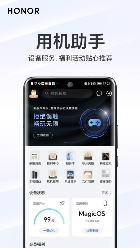 能够帮助荣耀用户找到更多的福利活动和设备相关信息,让用户更加方便地管理手机。