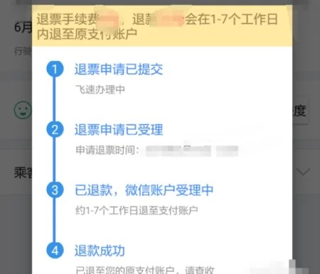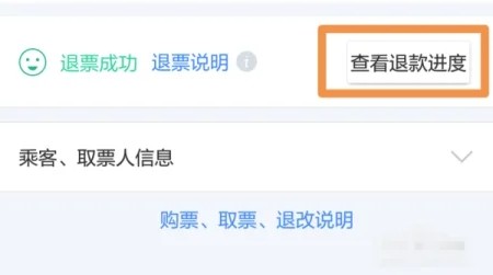 5、然后订单上会显示退票成功,可以点击查看退款进度。