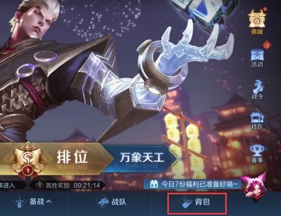 一、首先进入王者荣耀大厅界面,点击“背包 ”。