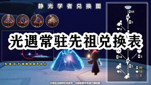 光遇游戏中有许多的常驻先祖分布于不同的地图内,依次是:晨岛、云野、雨林、霞谷、暮土、禁阁,全图共有37位常驻先祖,想要毕业各图的玩家需要注意,光遇常驻先祖的兑换物品以及价格都有所不同,本期小编就为大家带来了光遇全图常驻先祖兑换图鉴,感兴趣的小伙伴快来看看吧。