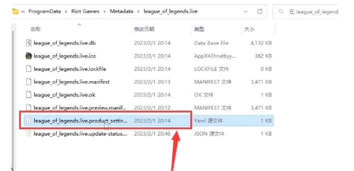 3、第二步是打开文件夹,找到这个文件,【league_of_legends.live.product_settings.yaml】