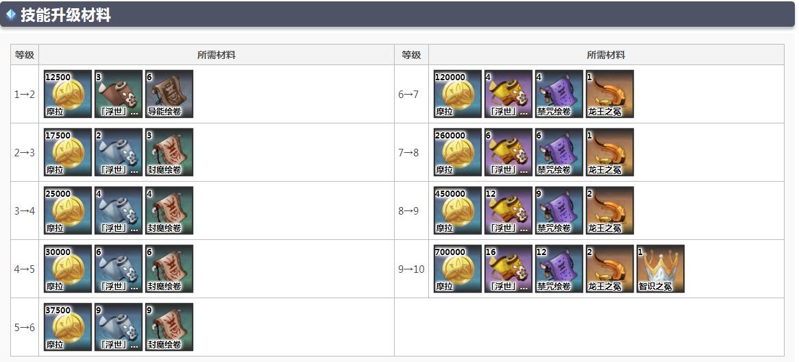 9→10:摩拉700000、浮世的哲学16、禁咒绘卷12、龙王之冕2、智识之冕