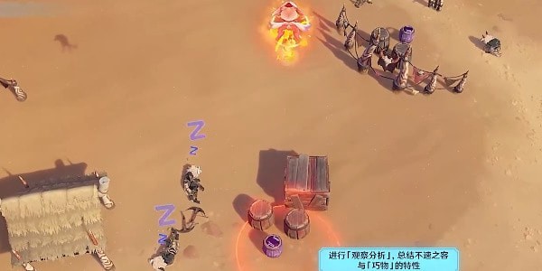2、我们将化身小鸟,在高空飞行并向下方投掷苦离果,找到下方的炸药桶会有奇效。
