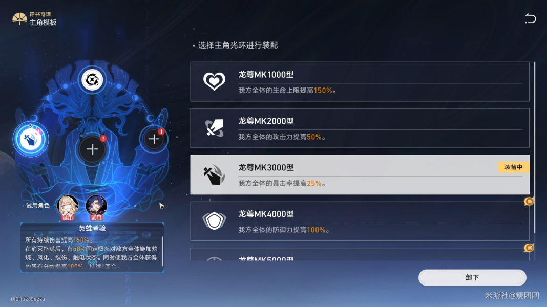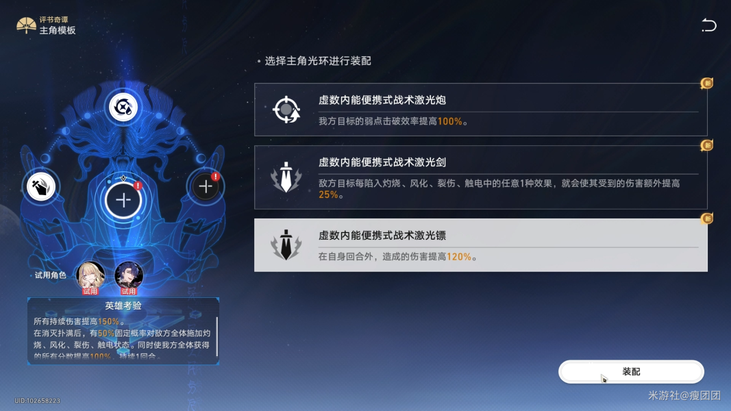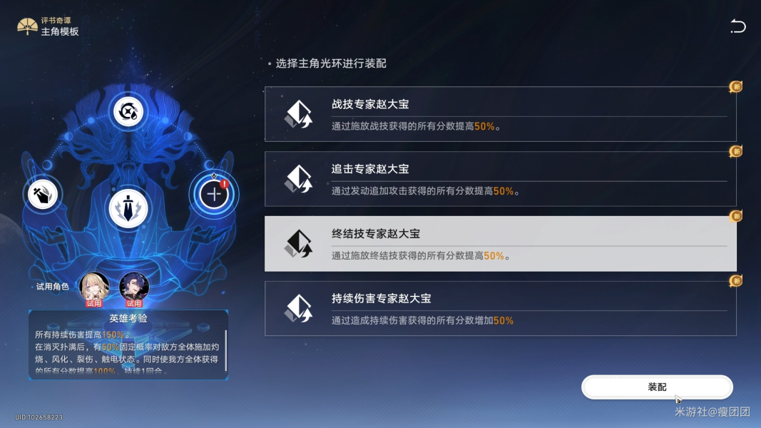配队选择试用希露瓦+桑博,自己的角色带个奶带个辅助就行了(火主,艾丝妲,停云,娜塔莎都行),然后挂机就能打满,当然自己有希儿,景元这些大C带上会更轻松,分数更高。