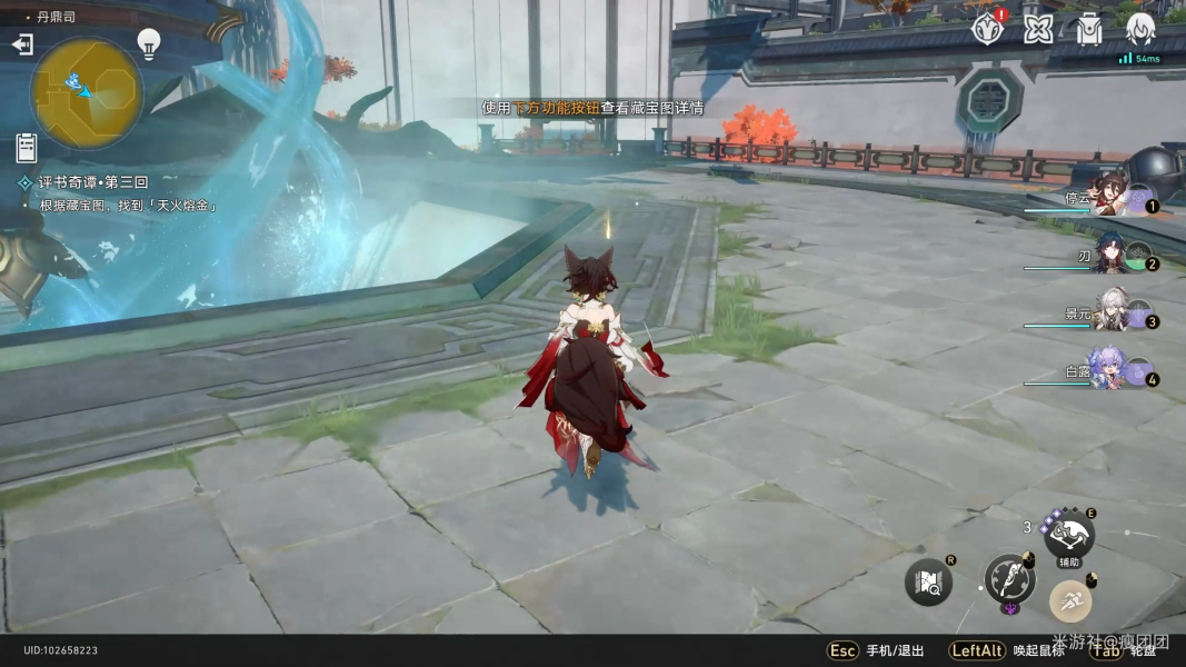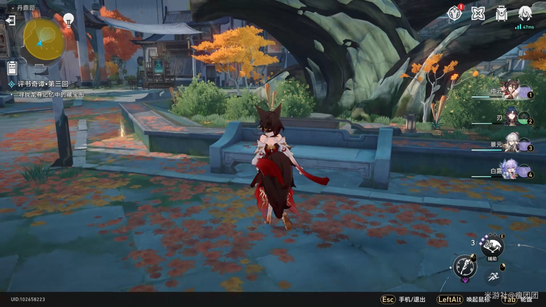 依旧是先做前置任务,任务有两个找东西的,第一个在大树后面,第二个在丹鼎旁边。
