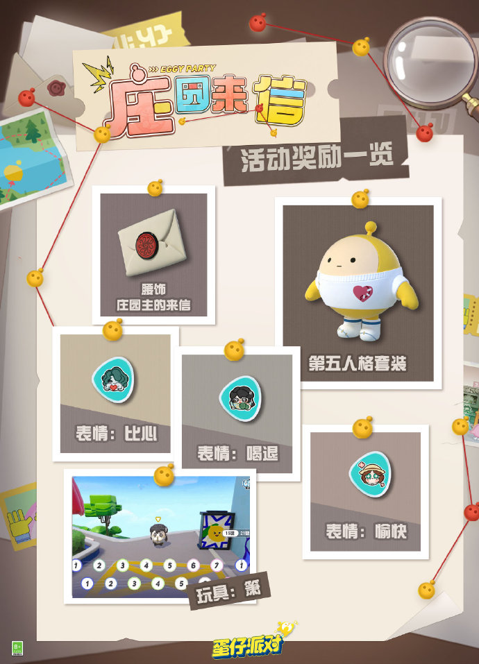 更有纽扣眼镜、机关箫、深林提灯、渔叉、移动能量包等精美配饰登场,为这趟冒险旅程提供优良装备,还有萌趣联动动作,复古联动头像框等待蛋仔们深入探寻~