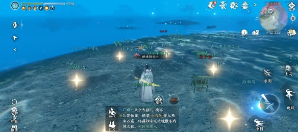 1、新开的镜湖地图,传送到水下幻境。按照以下坐标点齐星星: