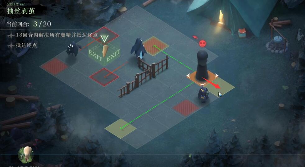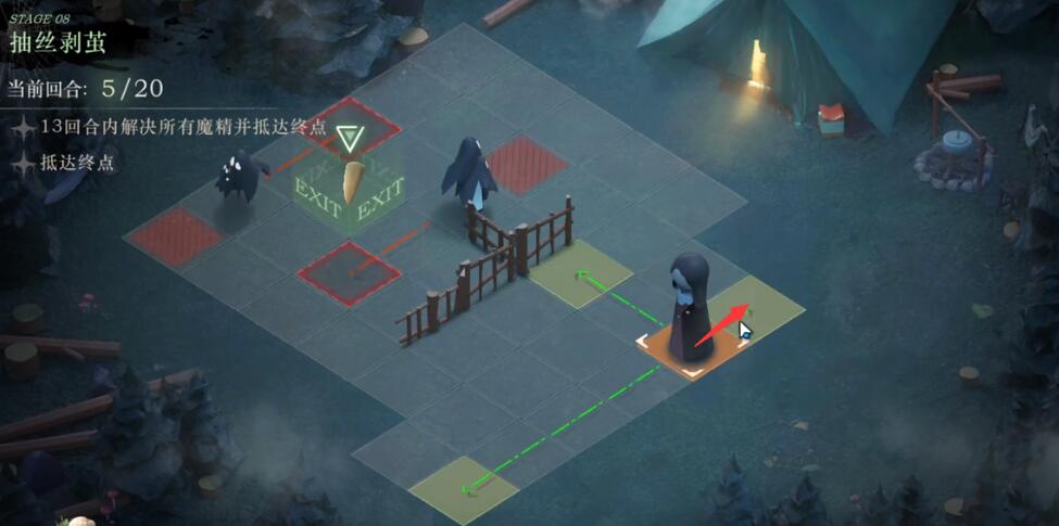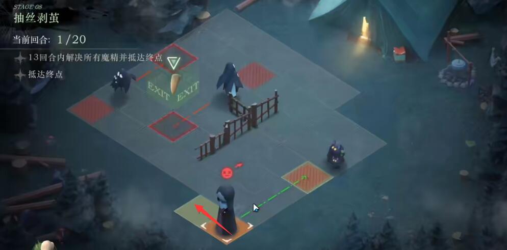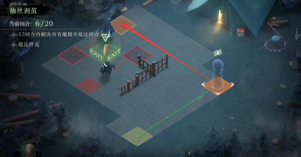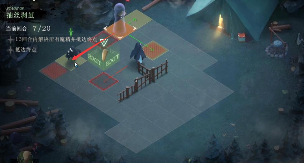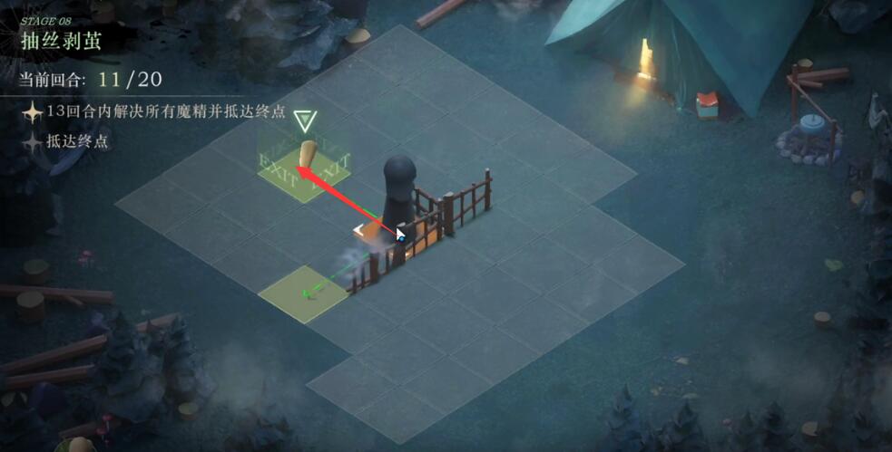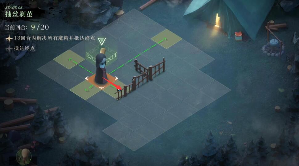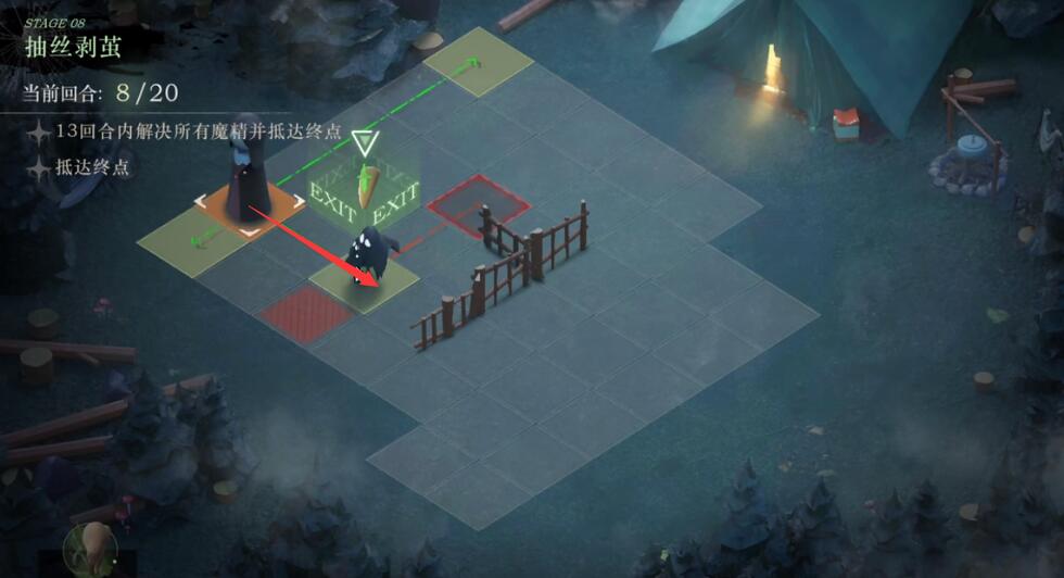※营地中土地湿滑,需要通过控制方向巧妙地利用场地障碍进行移动并解决阻碍的魔精以成功抵达终点。