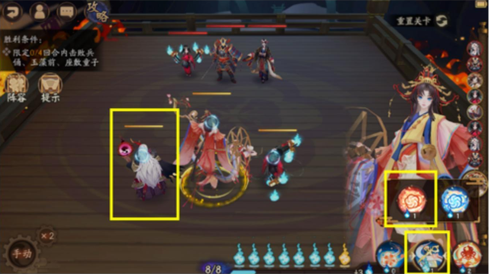 ①SP缘先点2技能,再选第一个图标,如左图所示,选好后标记玉藻前