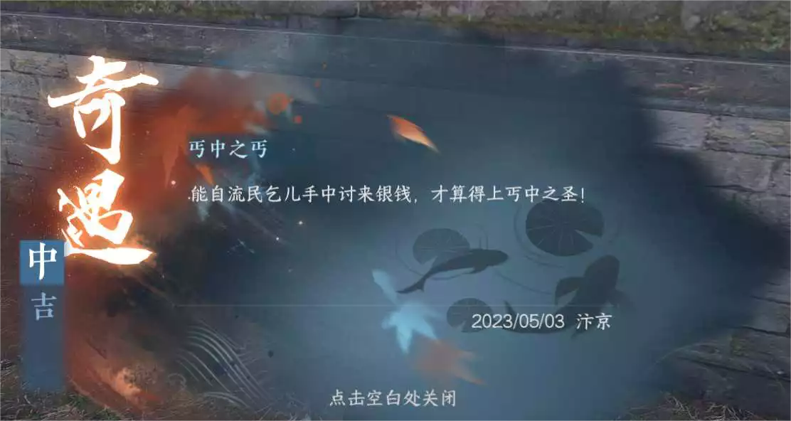 2.累计乞讨1.5万交子,小技巧让你的小伙伴或者找个也需要完成任务的人,你选中他/她然后乞讨,一次可以讨1万。