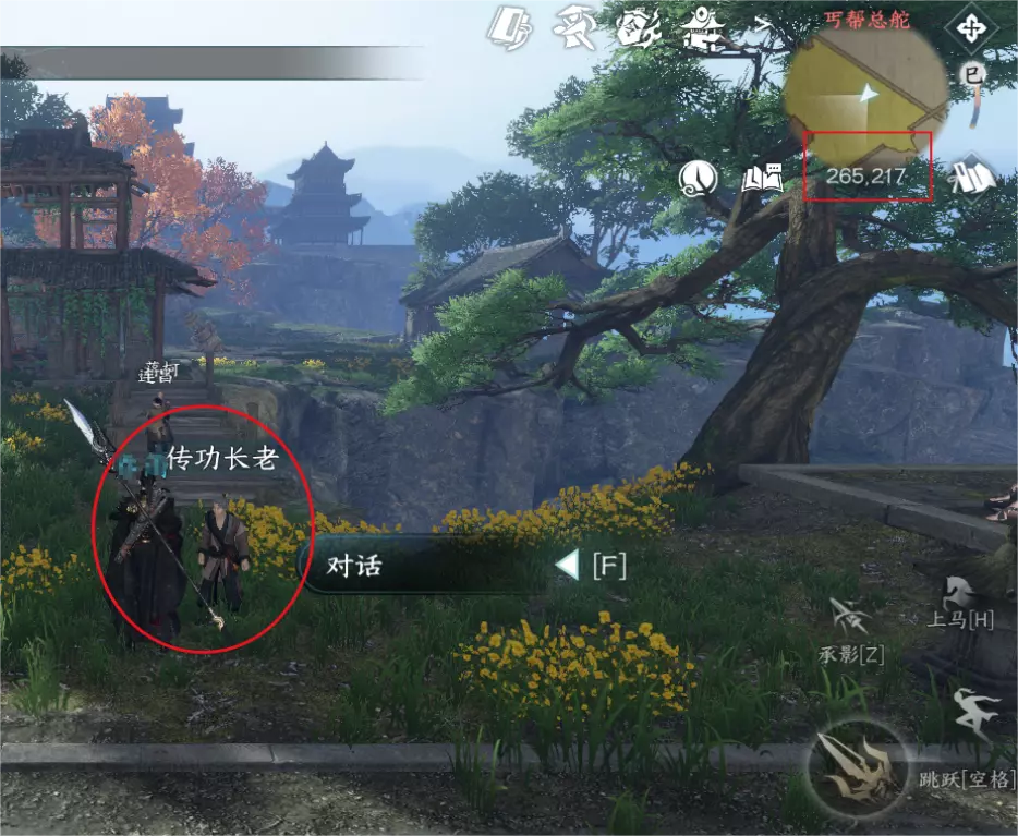 然后点击江湖门派界面的传功长老,可直接传回帮派,和长老对话学习【打狗棍绊】就可。