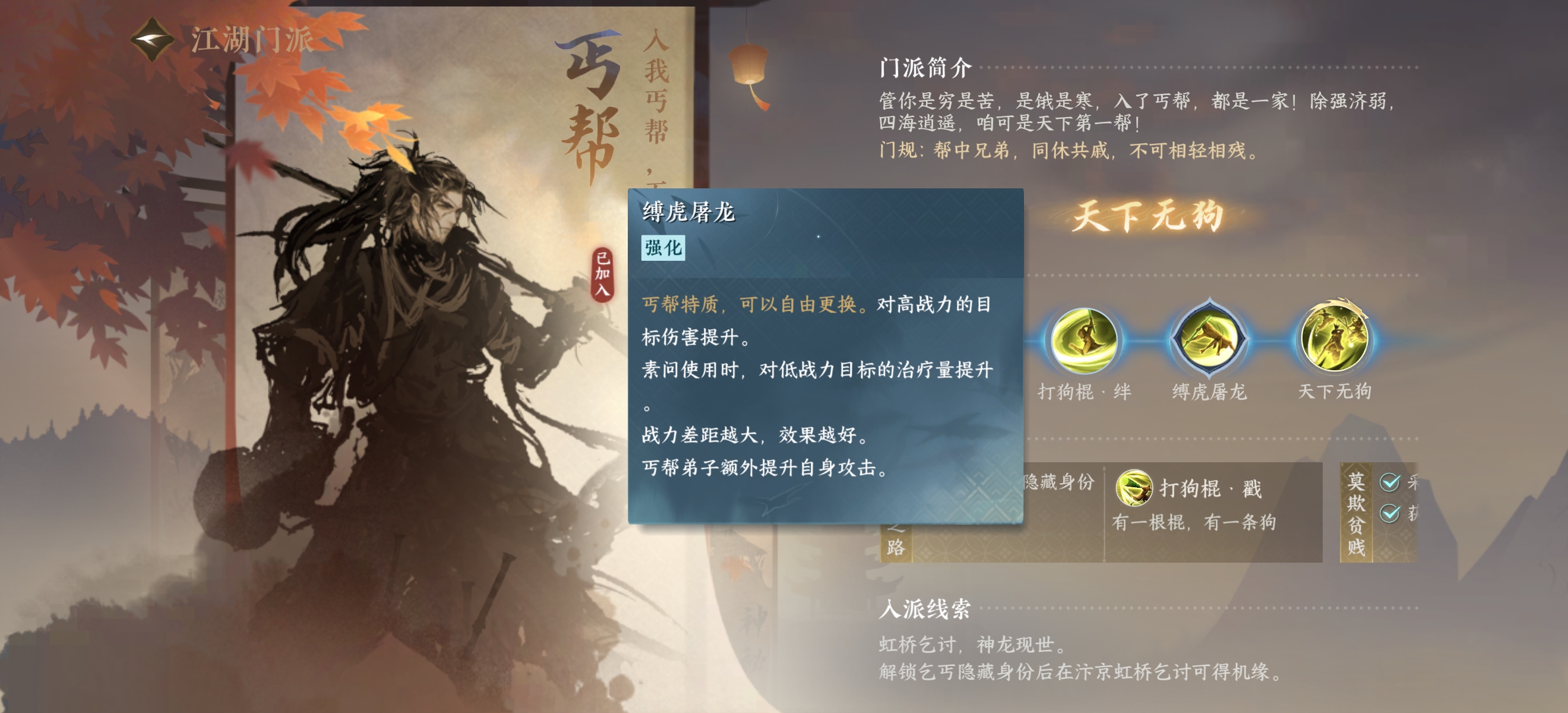 逆水寒手游中有许多的江湖门派,今天要介绍的是丐帮,相信很多小伙伴对丐帮的服装很感兴趣,今天小编带来逆水寒手游丐帮的加入方法以及信物服装技能的获取方式,感兴趣的话一起来看看吧。