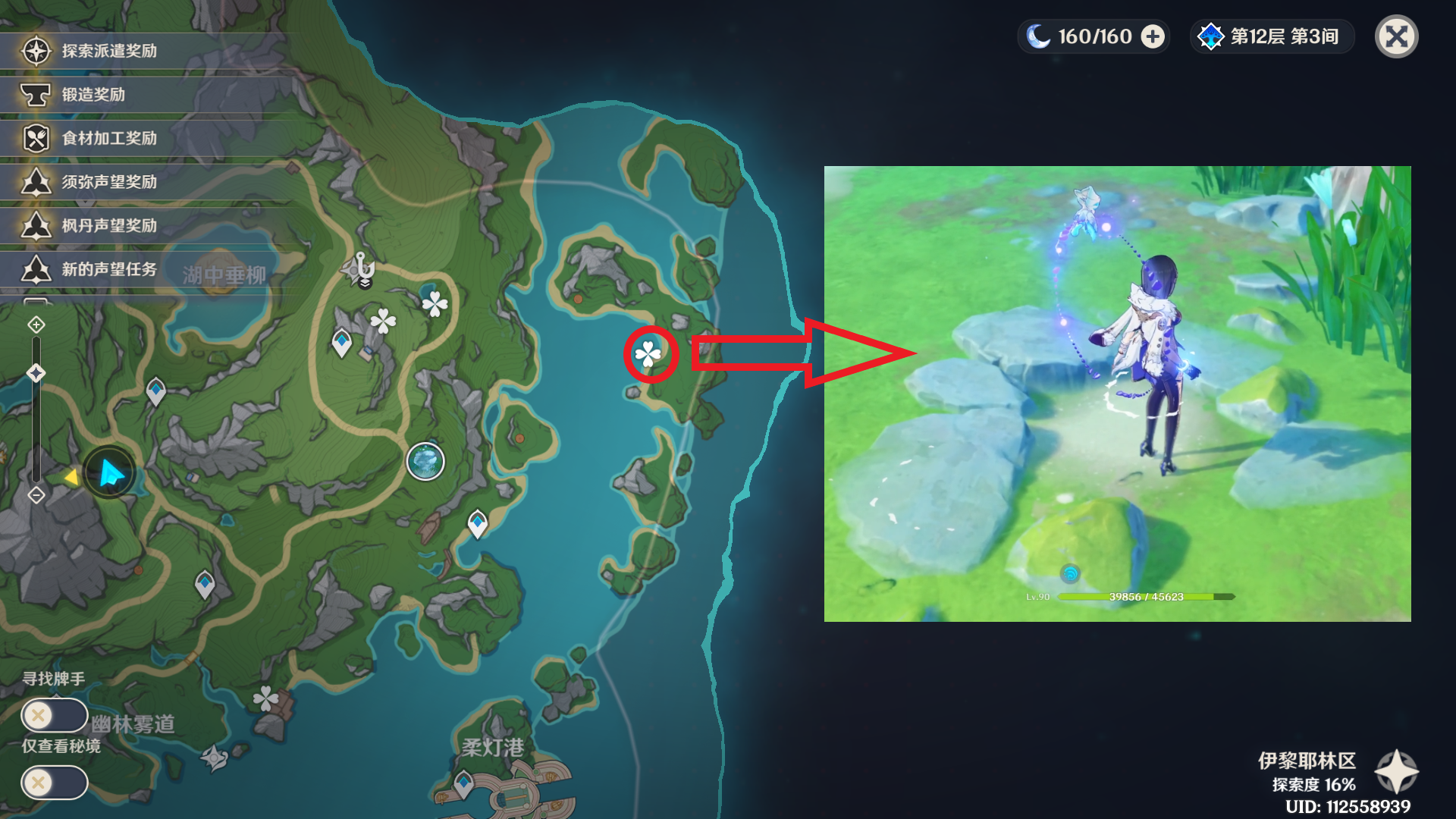 在标点处的“鱼眼”处(由石头围成,是不是看不懂),站一会可获得精致宝箱