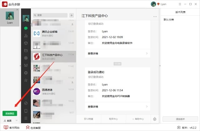 第五步、点击左下角的“添加微信”,继续登录第二个微信账号;