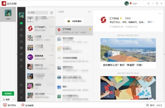 第六步、如图,现在软件上就登录了两个微信账号了,点击头像可以切换不同的聊天窗口,非常的方便!