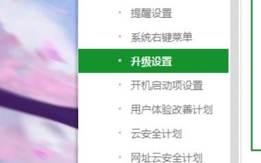 其次点击设置中心左侧选项栏中升级设置一栏,如图所示。