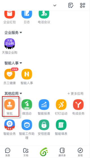 1、打开钉钉app的工作台,下拉界面在其他应用中点击审批;