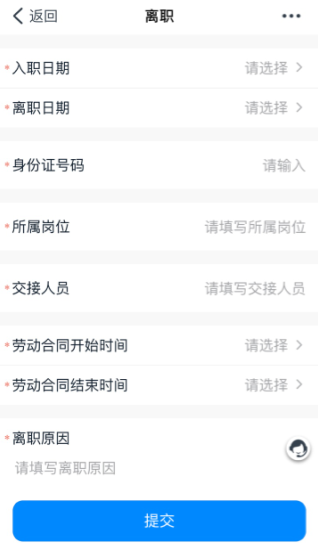 3、进入离职填写界面,填写相关信息进行提交即可。