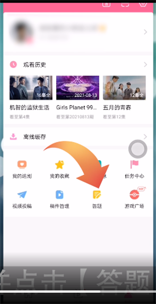 2.在个人主页界面下方的功能区中找到并点击【答题】选项。