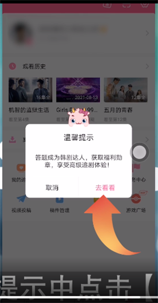 3.点击提示中的【去看看】,再点击【开始答题】即可。