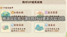 桃源深处有人家6月29日更新内容汇总,6月29日游戏会推出全新的限时建筑创物池,水镜清影,还有限时up建筑,云璃水镜,夏花繁音等。下面跟着小编一起来看看吧。 桃源深处有