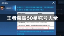 王者荣耀50星称号大全。王者荣耀排位段位到达50星的话,就会有专属的段位称号,是一种荣誉的标志,专属称号并不是那么容易取得的,英雄的专属称号也是对该英雄的一种认可,是对