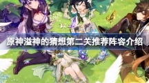 原神游戏里面最近一直都在进行各种不同的新活动,最近很多玩家不知道溢神的猜想第二关用什么阵容好,机关结构的反复,心海、行秋和柯莱生成草原核,卡维E或者Q引爆草原核即可。下